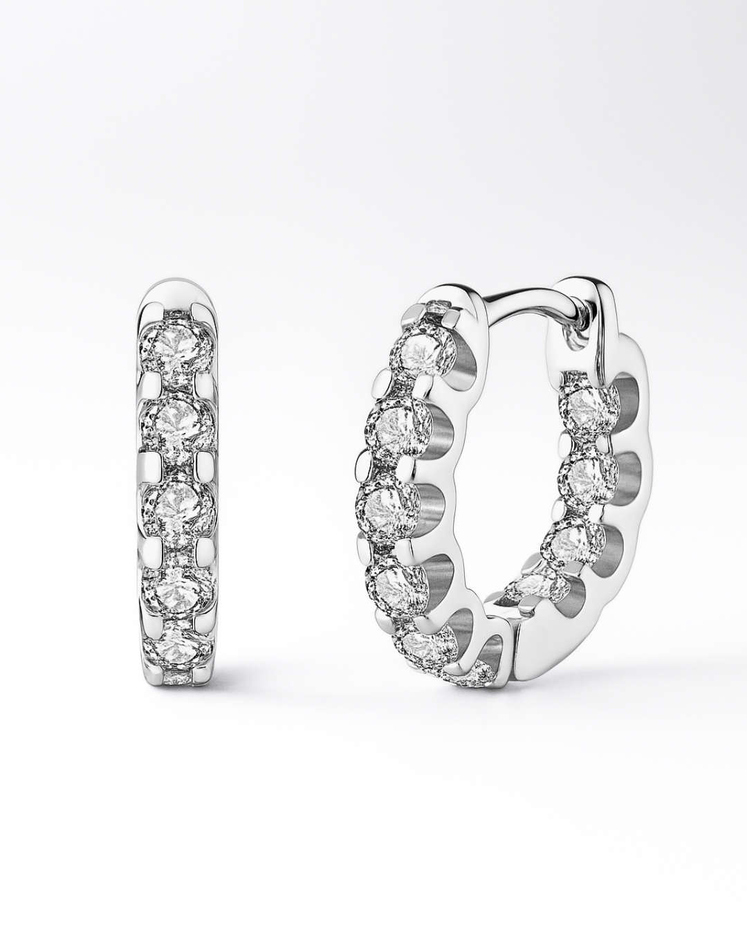 Delicados e atemporais, os Brincos Hoop Petite refletem sofisticação em sua forma mais pura. O brilho intenso dos moissanites contrasta com a leveza do aro em prata nobre, finalizado com ouro 10k.