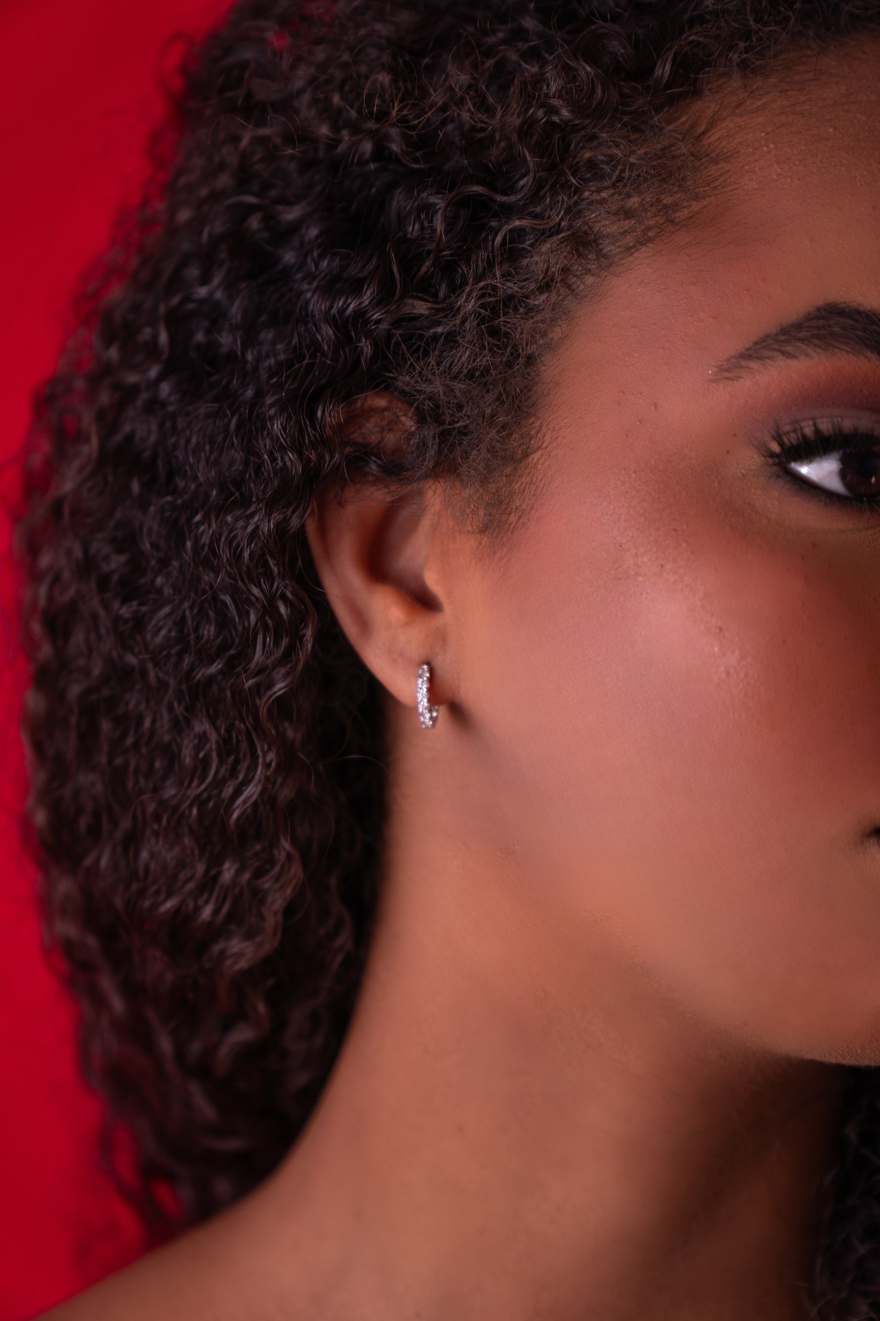 Brincos Hoop Petite em Prata 925 com Moissanite