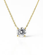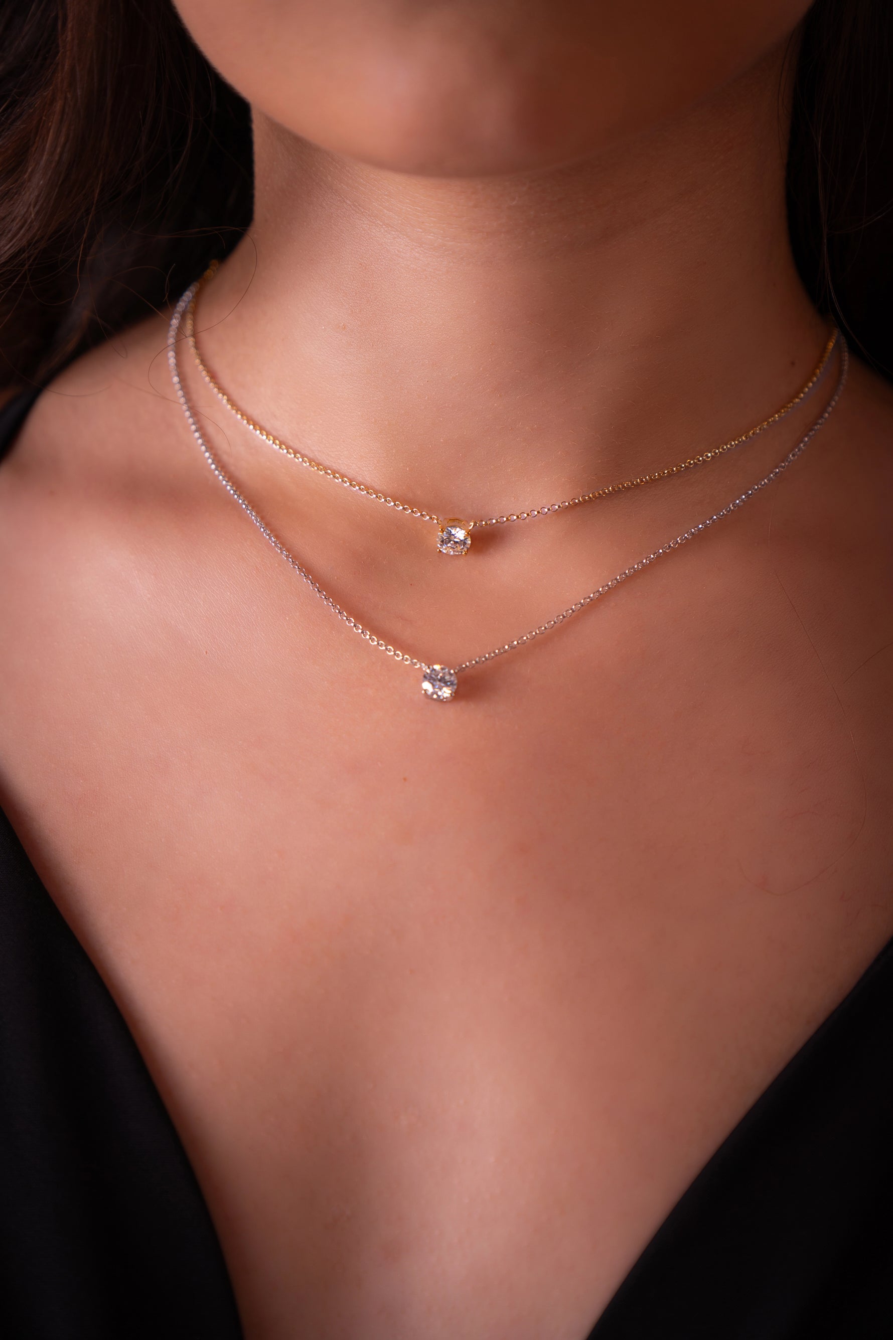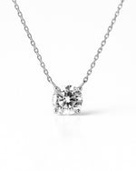 • Pingente com moissanita redonda versão de 1,0ct (6,5 mm) ou 1,5 (7,5mm) — brilho intenso e pureza excepcional